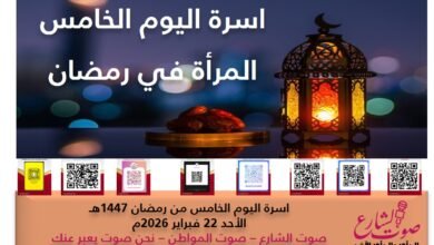 تسجيل مساحة | المرأة في رمضان| اسرة اليوم الخامس من رمضان 1447هـ الأحد 22 فبراير 2026م
