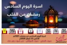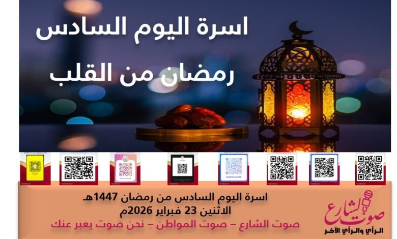 رمضان من القلب | تسجيل مساحة اليوم السادس من رمضان 1447هـ الاثنين 23 فبراير 2026م