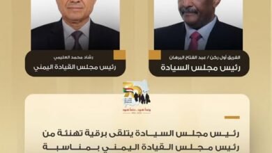 السيد رئـيــس مجلــس السيـــادة يتلقى برقية تهنئة من رئيس مجلس القيادة اليمني بمناسبة الذكرى الــ70 للاستقلال