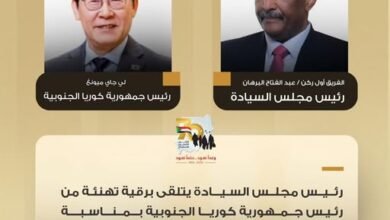 صوت الشارع قسم الاخبار السيد رئـيــس مجلــس السيـــادة يتلقى برقية تهنئة من رئيس جمهورية كوريا الجنوبية بمناسبة الذكرى الــ70…
