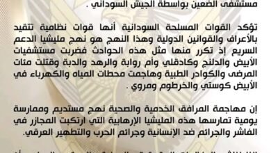 صوت الشارع متابعات القوات المسلحة: قصف المستشفيات هو نهج المليشيا المتمردة اصدرت القوات المسلحة بيانا السبت قالت فيه ان قيادة…