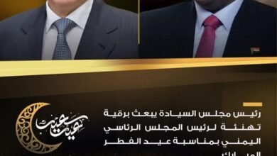 رئيس مجلس السيادة الانتقالي الفريق أول الركن عبدالفتاح البرهان يبعث برقية تهنئة لرئيس مجلس القيادة الرئاسي اليمني صاحب الفخامة رشاد محمد العليمي ، بمناسبة عيد الفطر المبارك