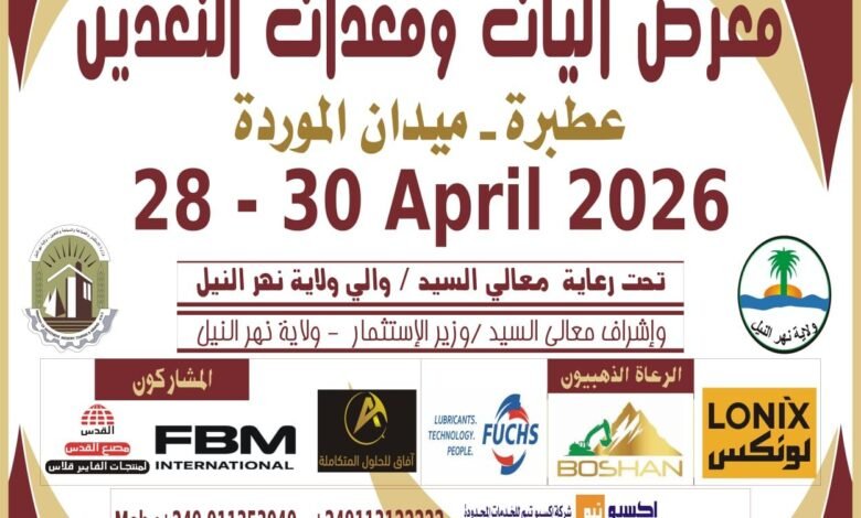 أكمل القراءة »صوت الشارع متابعات اقامة معرض آليات ومعدات التعدين بنهر النيل نهاية الشهر الجاري بعطبرة أعلنت شركة إكسبو تيم للخدمات وتنظيم…