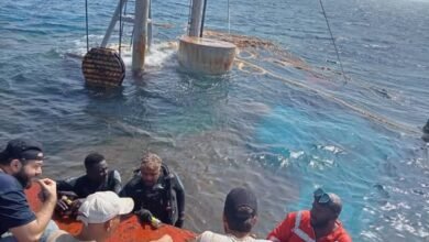 قوات الدفاع المدني بهيئة المواني البحرية قسم الإنقاذ النهري تشارك مع شركة Blue ShARK Diving في إنقاذ الباخرة ASINA CARGO