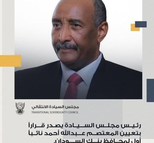 رئيس مجلس السيادة يصدر قراراً بتعيين المعتصم عبدالله أحمد نائباً أول لمحافظ بنك السودان