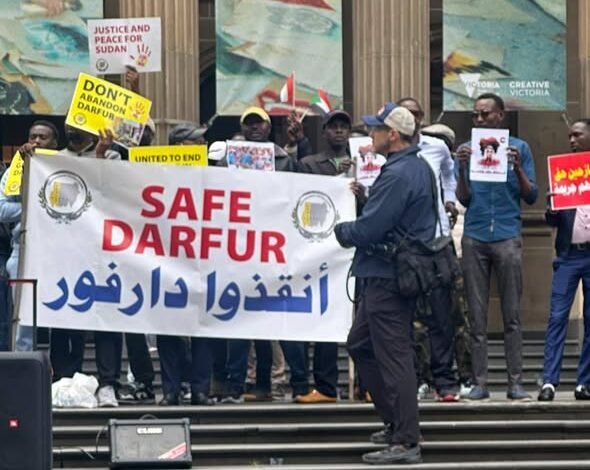 نظمت الجالية السودانية في ولاية فكتوريا الاسترالية وسط مدينة ملبورن اليوم وقفة تضامنية حاشدة تحت شعار “السودان ينزف – الفاشر تناديكم”، تنديداً بالمجازر والانتهاكات المروعة التي ارتكبتها مليشيا الدعم السريع الإرهابية ضد المدنيين في مدينة الفاشر وولايات دارفور.