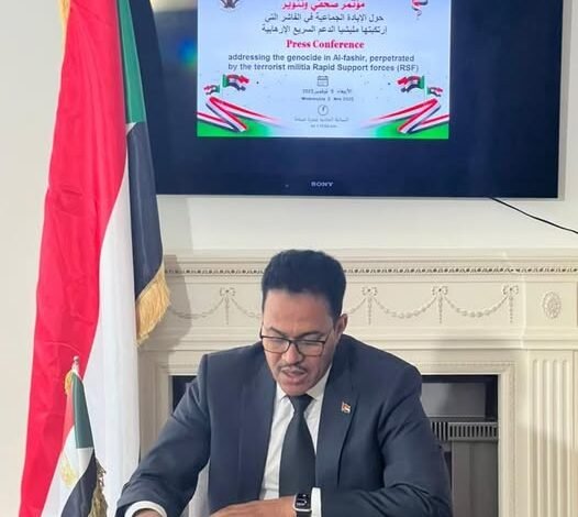 جاء ذلك خلال تنوير صحفى عقده اليوم الأربعاء بمقر السفارة، تناول فيه الاوضاع بالفاشر بحضور عدد من وسائل الإعلام الأسترالية والعالمية، من بينها ABC News وSBS News بالإضافة إلى ممثلين عن وكالات أنباء محلية ودولية.