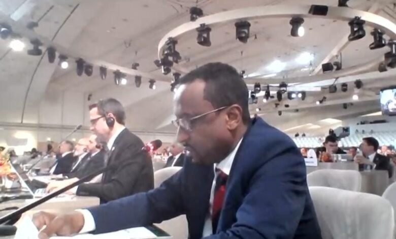 وقال الإعيسر خلال كلمته: “ندرك أن هذه الجمعية مخصصة للمجال السياحي، لكننا نغتنم الفرصة لندعو الدول الأعضاء والمنتسبين إلى منظمة الأمم المتحدة للسياحة إلى استهجان المواقف والممارسات التي تسهم في تقويض الاستقرار والتنمية في الدول الأعضاء، ونحثّ المجتمع الدولي على اتخاذ موقف موحد ضد الدول والجهات التي تساند الجماعات المسلحة الخارجة عن القانون، حمايةً للتراث الإنساني وصوناً لمستقبل الشعوب”.