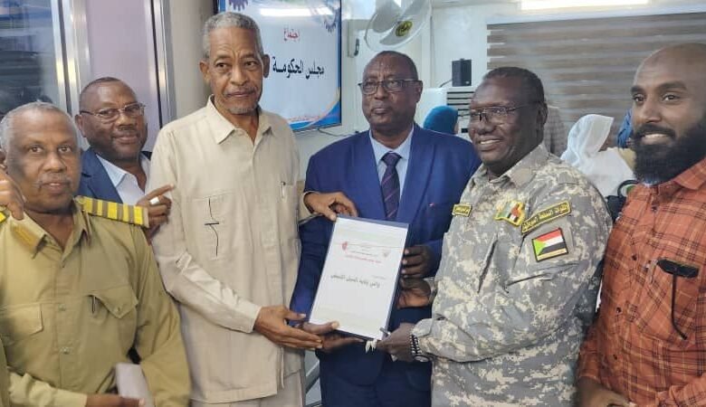 تسلم الفريق الركن قمر الدين محمد فضل المولى من رئيس الإدارة القانونية المستشار العام د. مبارك بابكر عبدالرازق تقرير لجنة التشريعات الولائية والمحلية بعد أن رفعت اللجنة تقريرها النهائي، بحضور أعضاء حكومة الولاية .