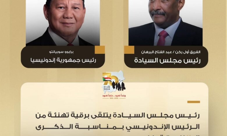 ⭕ السيد رئـيــس مجلــس السيـــادة يتلقى برقية تهنئة من الرئيس الإندونيسي بمناسبة الذكرى الــ70 للاستقلال.