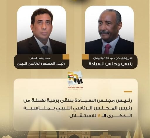 السيد رئـيــس مجلــس السيـــادة يتلقى برقية تهنئة من رئيس المجلس الرئاسي الليبي بمناسبة الذكرى الــ70 للاستقلال
