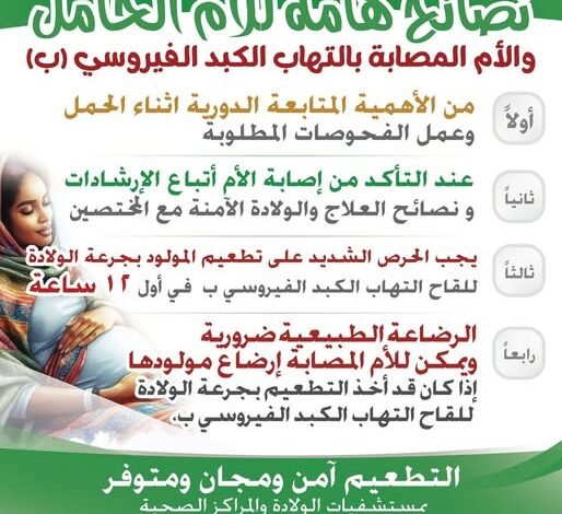 نصائح هامة للأم الحامل عموما والمصابة بالتهاب الكبد الفيروسي (ب) على وجه الخصوص