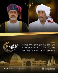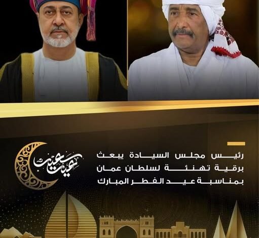 رئيس مجلس السيادة الانتقالي الفريق أول الركن ‫عبدالفتاح البرهان‬ يبعث برقية تهنئة لسلطان عُمان جلالة السلطان هيثم بن طارق ، بمناسبة عيد الفطر المبارك