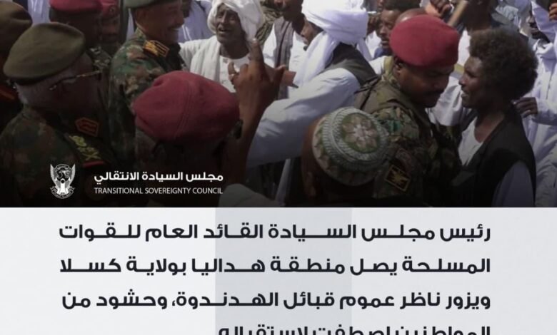 السيد رئيس مجلس السيادة القائد العام للقوات المسلحة الفريق أول الركن عـبـدالـفـتـاح البرهــان يصل منطقة هداليا بولاية كسلا، ويزور ناظر عموم قبائل الهدندوة، وحشود من المواطنين اصطفت لاستقباله.