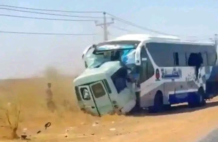 نتيجة لخلل فنى فى العربة الحافلة :حادث مرورى بطريق الخرطوم مدنى بين بص سفرى وحافلة يؤدى الى وفاة عدد(14) وإصابة(16) تم نقلهم الى مستشفى الكاملين لتلقى العلاج