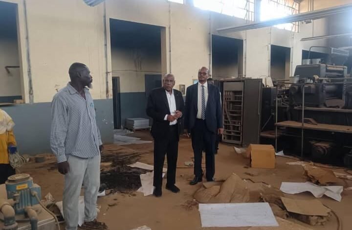 وتفقد التهامي والوفد المرافق أقسام المطبعة ووقف على حجم الخراب والدمار الذي مارسته المليشيا المتمردة. وأوضح الوزير أن الضرر الذي طال المطبعة تمثل في سرقة الموتورات والكابلات، معلناً عن عزمهم الشروع في تكوين لجنة فنية لتقييم الضرر والسعي في إعادة تأهيل المطبعة حتى تباشر عملها