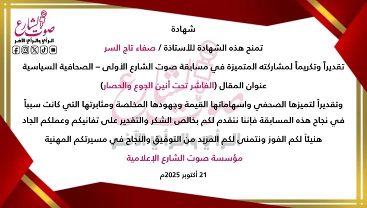 شهادات مسابقة صوت الشارع الأولى | صفاء تاج السر | الصحافة السياسية
