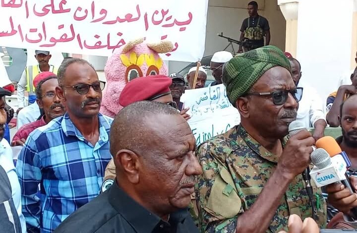 أكد الأستاذ الطاهر إبراهيم الخير والي ولاية الجزيرة لدى مخاطبته اليوم بأمانة حكومة الولاية بمدني الوقفة التضامنية التي نظمها إتحاد فرق الفنون الشعبية بالولاية دعماً ومساندة للقوات المسلحة في معركة الكرامة إن مليشيا أسرة دقلو الإرهابية إستهدفت الهوية السودانية ودمرت البنى التحتية وعطلة الإنتاج، مؤكداً أن جيشاً له إستراتيجية ويلتف حوله شعبه يستحيل أن تهزمه مليشيا .