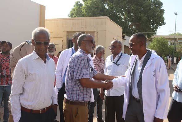 العاملون بمستشفى النو يستقبلون د. جمال الطيب احتفالاً وابتهاجاً لنيلة جائزة “أورورا” العالمية