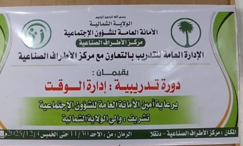 بدأت اليوم بدنقلا الدورة التدريبية في مجال إدارة الوقت والتي تنظمها الادارة العامة للتدريب بالتعاون مع مركز الأطراف الصناعية بالولاية الشمالية وتستهدف الدورة التي تستمر حتي الرابع من شهر ديسمبر المقبل منسوبي مركز الأطراف الصناعية .