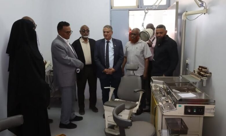 وطلب من إدارة التنمية بالوزارة بفحص المبنى ومده بالتكلفة الكلية لعمليات التأهيل وتقييم الأجهزة في غضون الاسبوع المقبل، بعدما اطلعته المدير العام لمستشفى الأسنان دكتورة اريج كمال الأمين على موقف المستشفى من حيث المباني والأجهزة والمعدات التي تولت إدارتها أمر حصرها وحفظها إبان تحرير الخرطوم، مبينة ضرورة تشغيل المستشفى لكونه مرجعي يشتمل على (😎 أقسام أبرزها جراحة الوجه والفكيين والتشوهات الخلقية والشفه الأرنبيه ويعتبر أكبر مركز للبحوث.