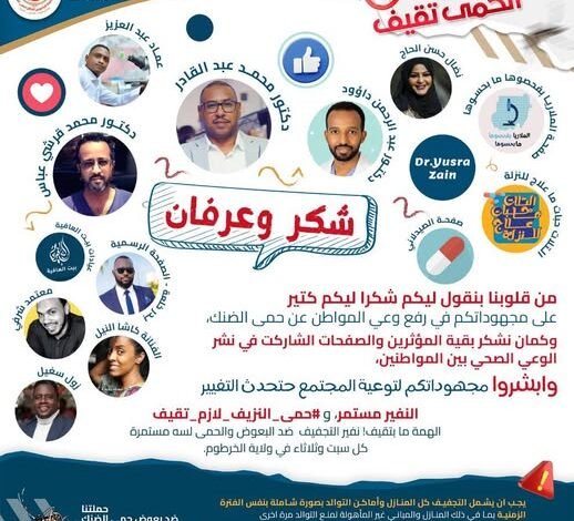 📍 نفير التجفيف ضد البعوض والحمى لسه مستمرة كل سبت وثلاثاء في ولاية الخرطوم.