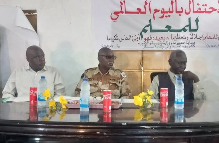 وقال إن اليوم هو دعوة للاهتمام بالمعلم وإعلاء مكانته لغرس القيم والأخلاق ورسالة التعليم مقدما مصلحة الوطن، ضارباً أروع الأمثال ونكران الذات، محيياً دور معلمي ولاية سنار لإدارة العملية التعليمية في أحلك الظروف.