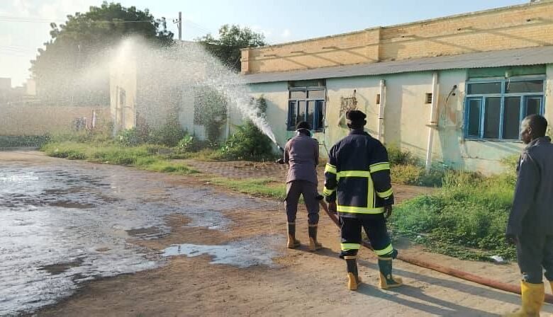 قوات الدفاع المدني كسلا تنظم حملة التعقيم الشامل لجميع الأسواق ومستشفي كسلا التعليمي