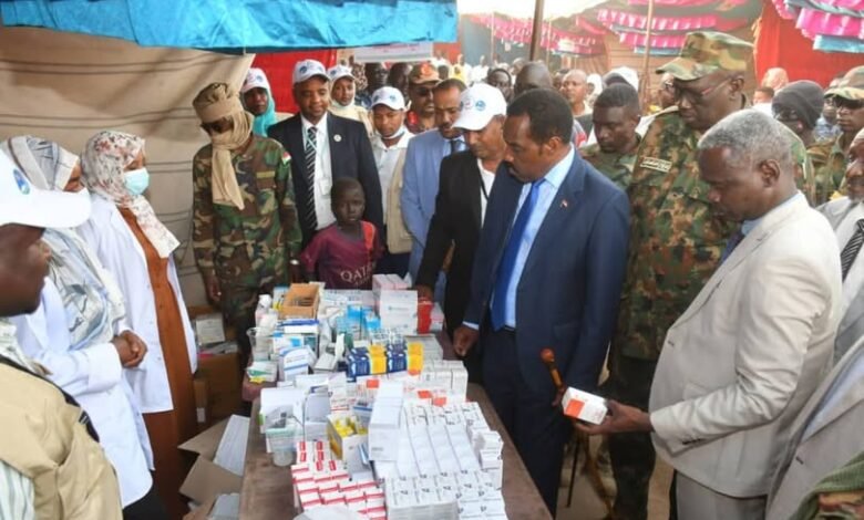 وزير الموارد البشرية وحاكم النيل الازرق يدشنان المخيم العلاجي للعائدين بمعسكر الكرامة (5)