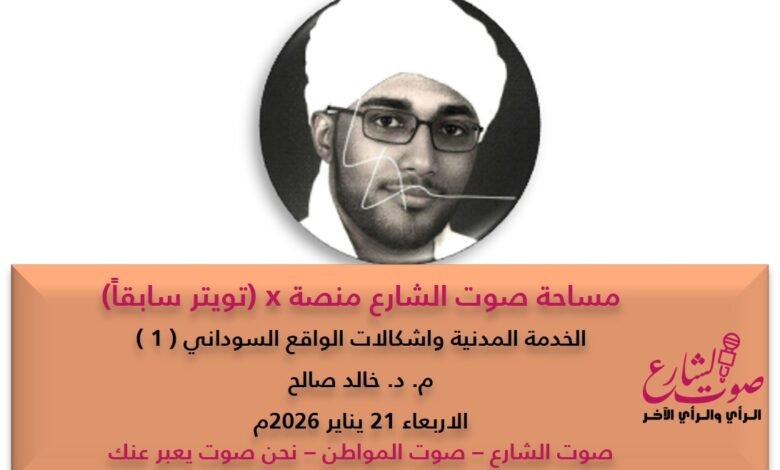 تسجيل مساحة : الخدمة المدنية واشكالات الواقع السوداني ( 1 ) م. د. خالد صالح 21 يناير 2026م